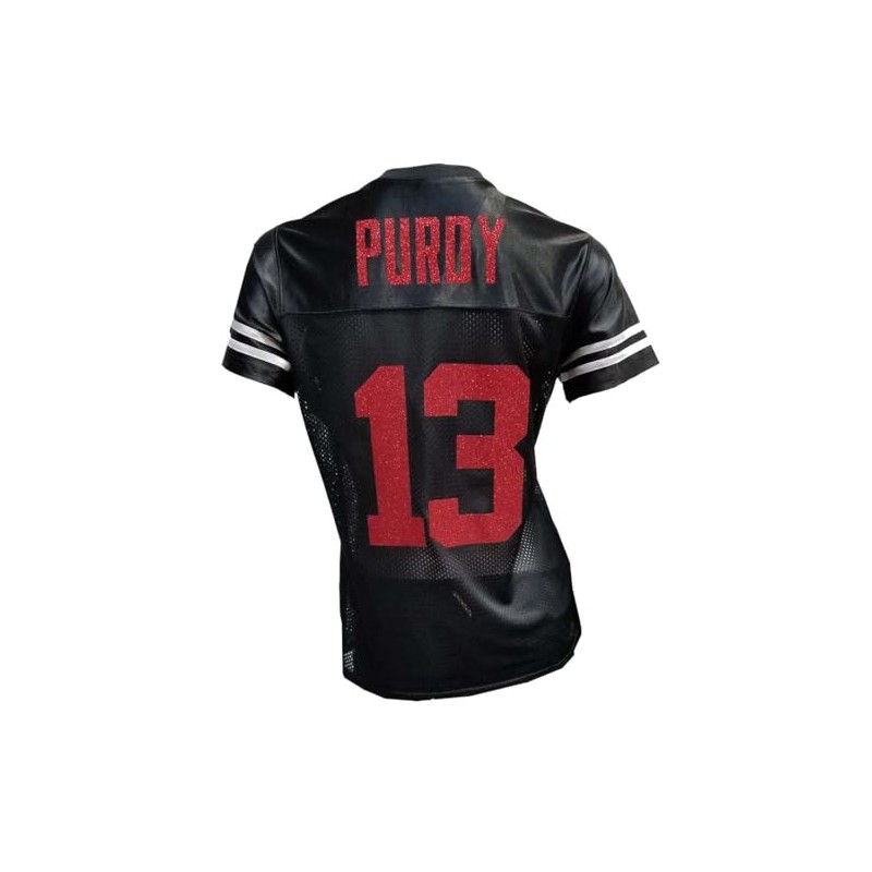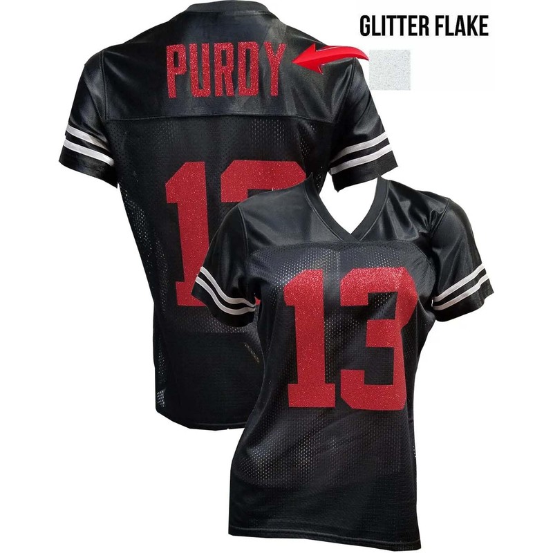 Custom Glitterflake Brock Purdy Womens Black Mesh Jersey Size Large