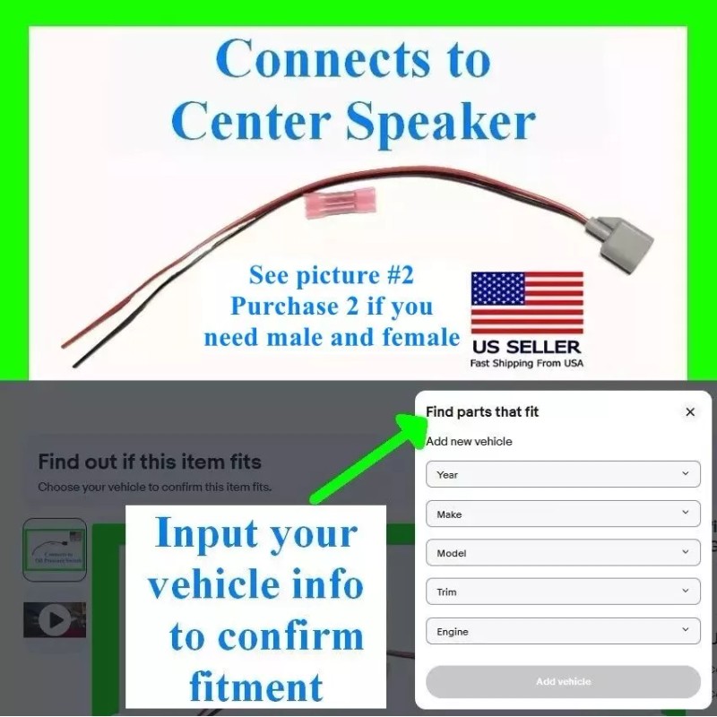 Custom Kit fits F150 F250 Edge Front Dash Center Speaker Connector Plug Wiring Harness Wire