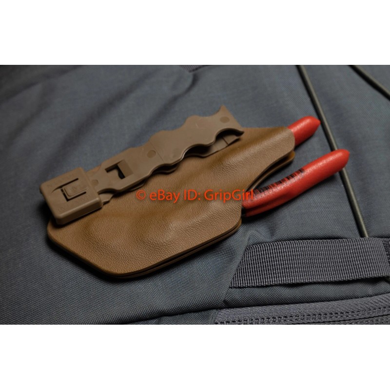 Includes genuine Tactical Tailor MALICE clip for belt or MOLLE web gear attachment. The MALICE clip can be used to attach the holster to your belt. Holster uses standard .75" rivet spacing to allow the use of various mounting options. This holster requires 2 hands to reholster, but allows for secure storage and rapid removal when trauma shears are needed for emergency use. Made using only Genuine US Made Kydex.