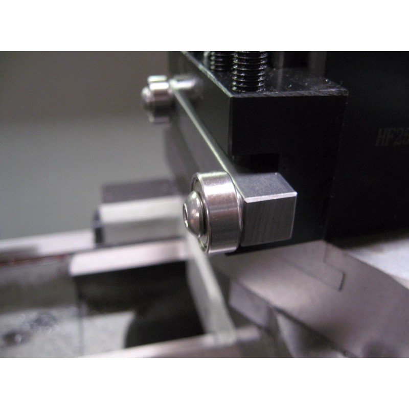 This tool is approximately 4" inches long and made of 1/2" x 1/2" square stock. It should fit any tool post that can hold a 1/2" square tool bit. The roller bearings have a 1/4" bore, are 9/32" wide, and are 3/4" in diameter. There is a stainless steel washer spacing the bearing off the bar. The bearings are held in place with a stainless steel 1/4-20 button head screw ground to length.