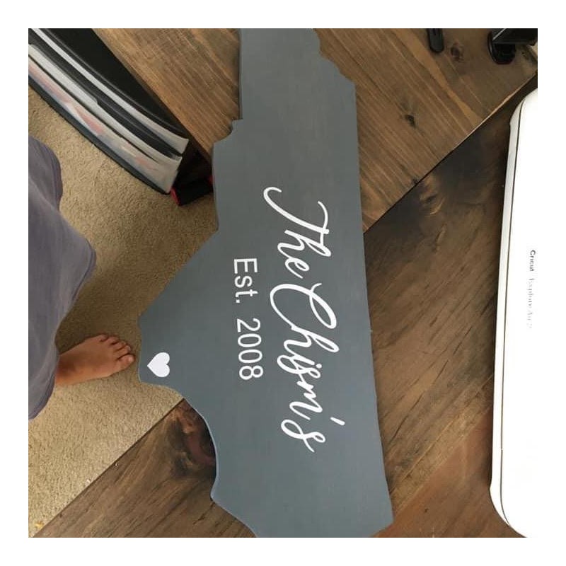 Custom NC Wood Cutout Comes in Grey, Espresso, or Whitewash Can do any saying, name, design in any color.
