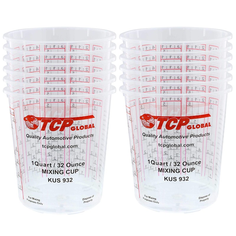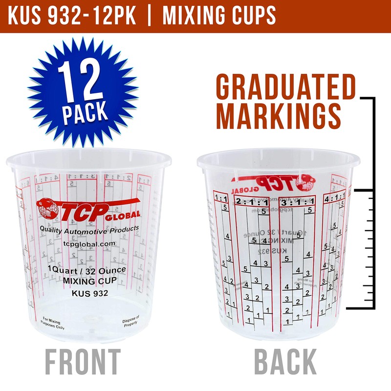 - Pack of 12 Mixing Measuring Cups - 32-ounce mixing cups turning them into paint storage cups. Perfect for professionals and DIYers working with automotive paints, epoxy resins, and acrylics.