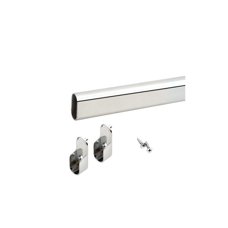 Custom size oval closet rod with choice of end support (Chrome)