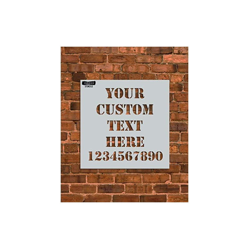 Custom Text Stencil - Customize Your Own Stencil - 3 Lines - 15 Different Fonts Available - INNOVO Stencils (Square 12" x 12")