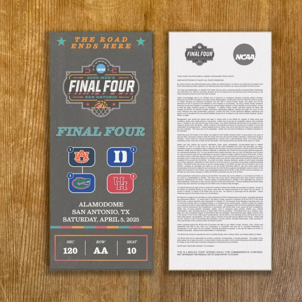 Customizable 2025 Final Four Physical Ticket Stub San Antonio Replica Any Seat