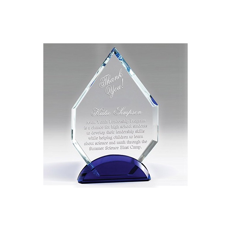 Customizable 8 Inch Arrowhead Optical Crystal Award with Blue Base with Personalization