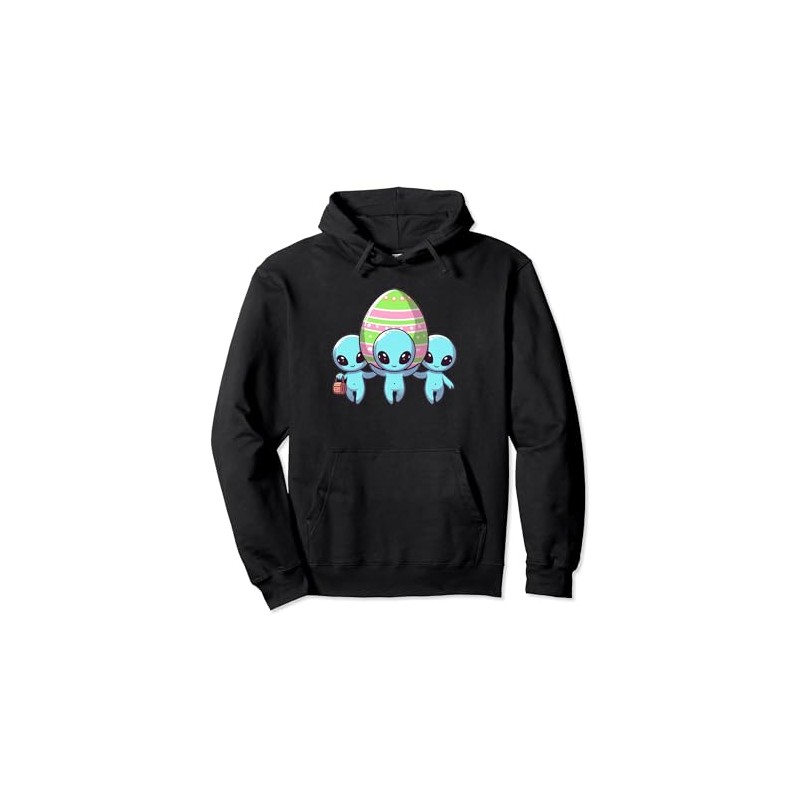 Cute Aliens Carrying Giant Colorful Easter Egg Pullover Hoodie