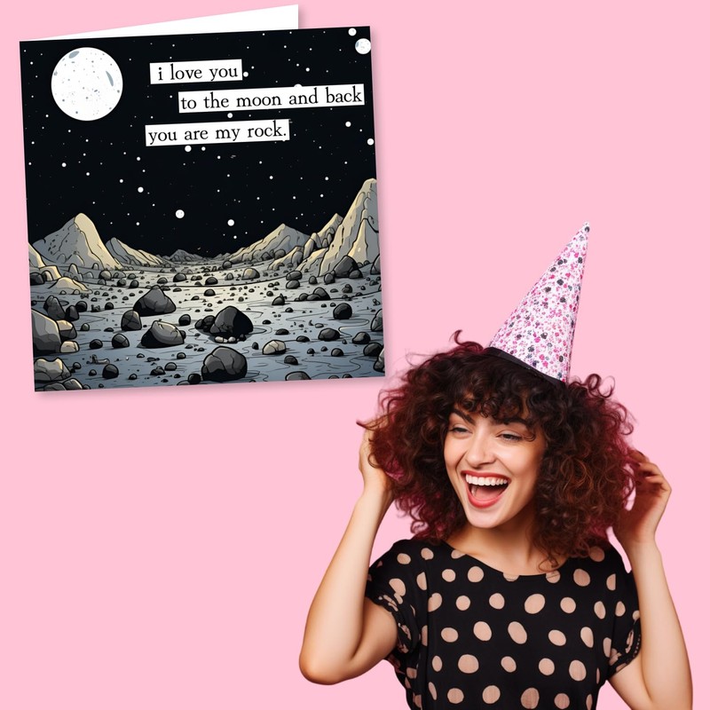 Cute Anniversary or Valentine's Card For Your Other Half - I Love You To The Moon And Back. You Are My Rock - Made in UK