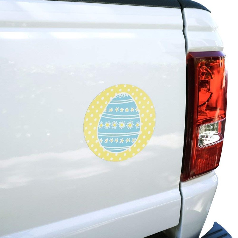 Cute Blue Easter Egg with Daisies Automotive Car Window Locker Circle Bumper Sticker