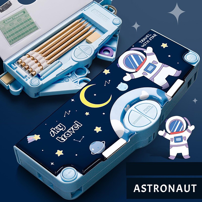 Cute Cartoon Astronaut Pencil Case for Boys,Pop Up Multifunctional Pencil Box with Sharpener,Schedule,School Supplies,Durable Kids Pencil Pouch with Compartments