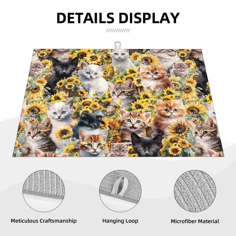 Cute Cat Dish Drying Mat 18 x 24 Inch for Kitchen Counter Cute Kitchen Mat Mi...