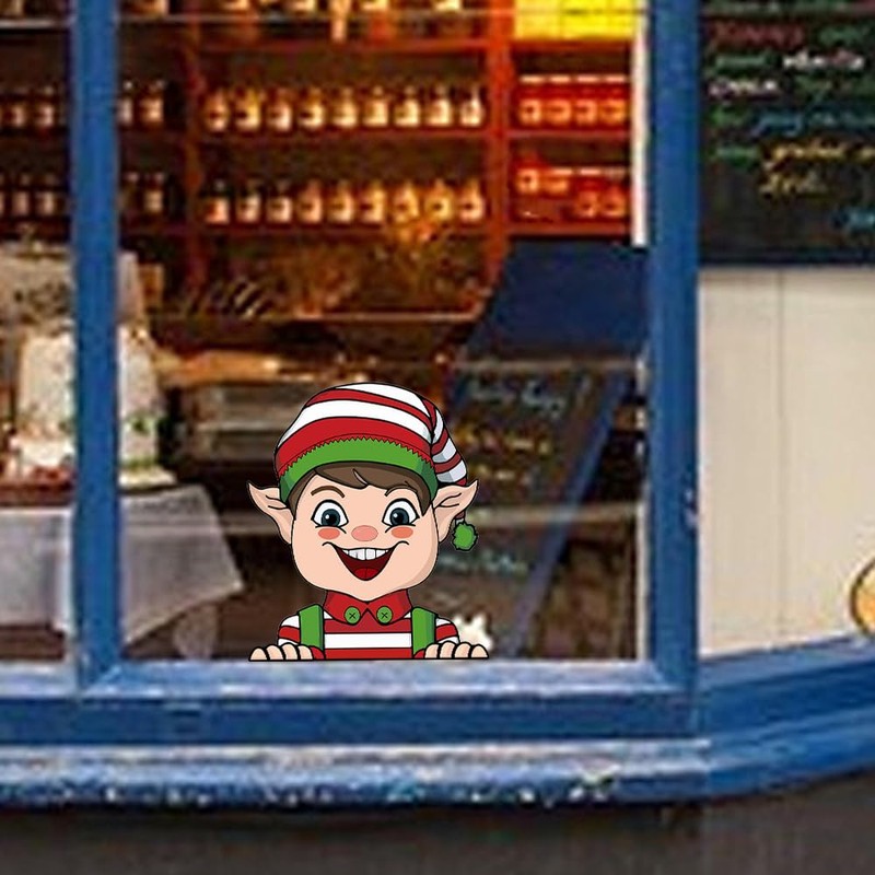 Cute Christmas Snowman Peeking Stickers Reindeer Santa Claus Car Window Bumper Decal Waterproof Vinyl Car Sticker Decal Truck Laptop Wall Car Decoration(Striped Elf)