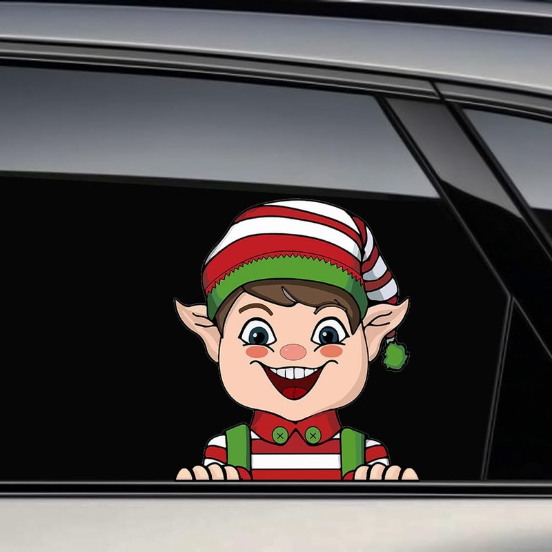 - 【Funny Christmas Sticker】Funny Santa Claus, dwarf, elf, snowman peeking at you from the car. warm, cute and hilarious. High class material and fine details attract eyes.