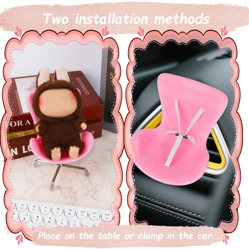 Cute Doll Car Seat with Air Vent Clip & Desktop Stand, Polyester Safety Chair for 10-17cm Plush Dolls Pink Car Accessories & Collectible Display