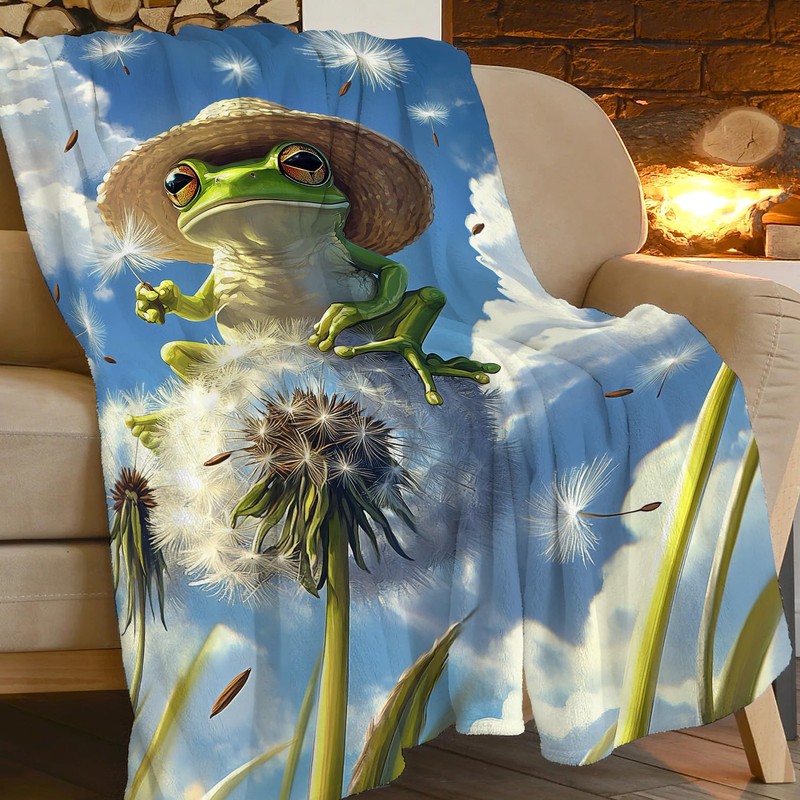 Cute Frog Blanket Dandelion Throw Blankets for Girls Boys Soft Warm Funny Throws Flannel Fleece Plush Stuffed Animal Gifts for Kids Men Women Adults for Bed Sofa Bedding Decor 50"x40"