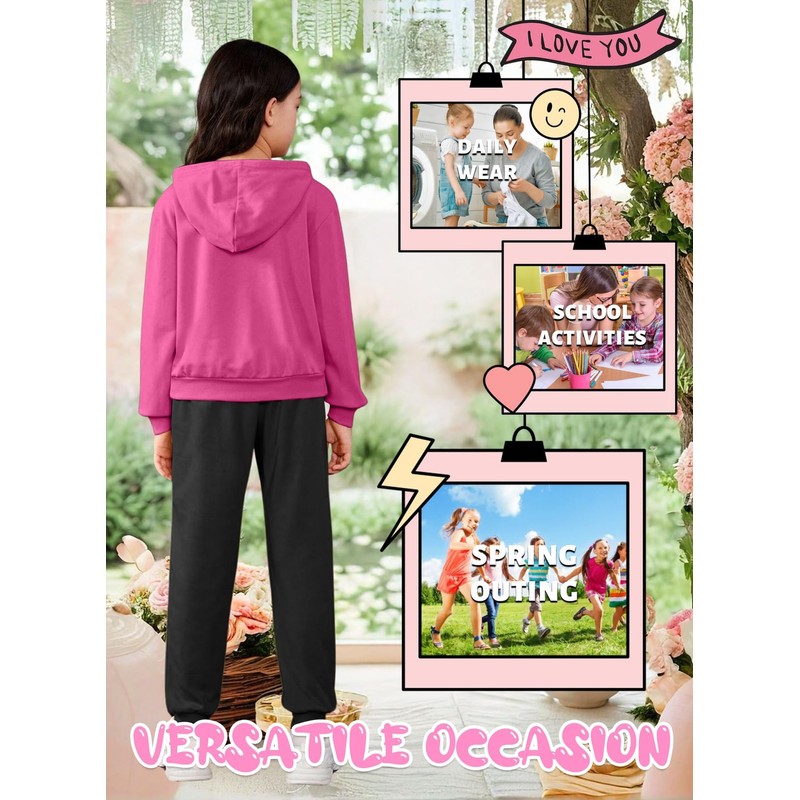 - đź’ť Available Sizes & Care Instructions: Available in a range of sizes to fit girls from toddlers to tweens. To keep this sweatsuit looking its best, hand wash in cold water and tumble dry on low heat. Avoid bleach to maintain the vibrant colors and soft texture. Perfect for keeping your little one stylish and warm all season long.