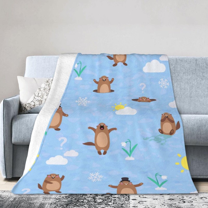 Cute Groundhog Blanket Soft Lightweight Throw Blankets Cozy Flannel Bed Throws for Sofa Couch Travel Home Room Bedroom Decor Gifts for Boys Girls Kids Adults 50"x40"