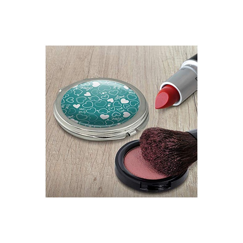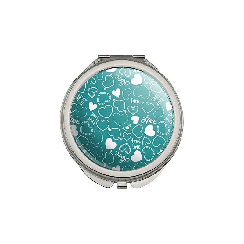Cute Hearts Love Pattern on Teal Turquoise Compact Travel Purse Handbag Makeup Mirror
