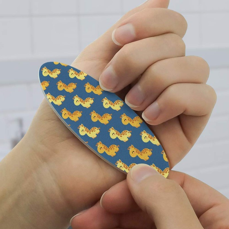 Cute Kawaii Baby Giraffes Pattern Double-Sided Oval Nail File Emery Board Set 4 Pack