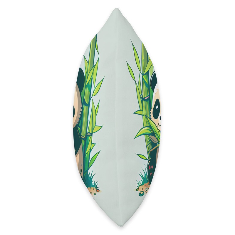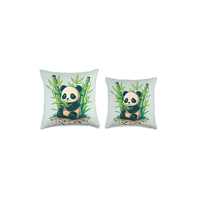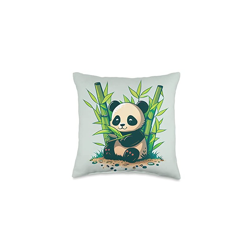 Cute Kawaii big panda holding bamboo shoots in forest Throw Pillow