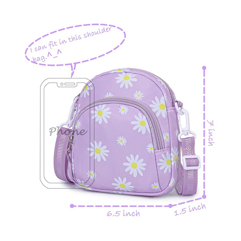 • Splash-Resistant and Spacious Interior for Everyday Use.Designed with splash-resistant material, the bag keeps contents dry during unexpected spills or light rain. Inside, there's enough room for coins, a mobile phone, pens, a small book, snacks, and more, making it perfect for day trips, picnics, and playdates.