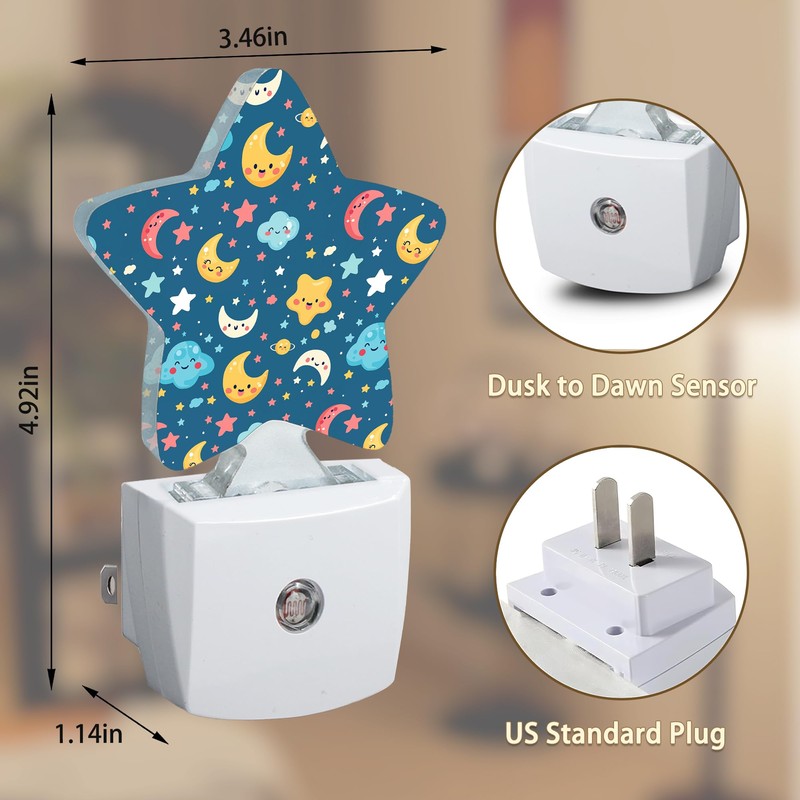 Cute Moon Stars Night Lights Plug into Wall with Dusk to Dawn Sensor,Lamp for Bedroom Bathroom Hallway Nightlight for Women Girls Kids Gifts