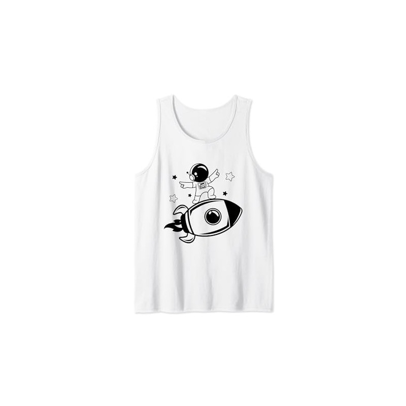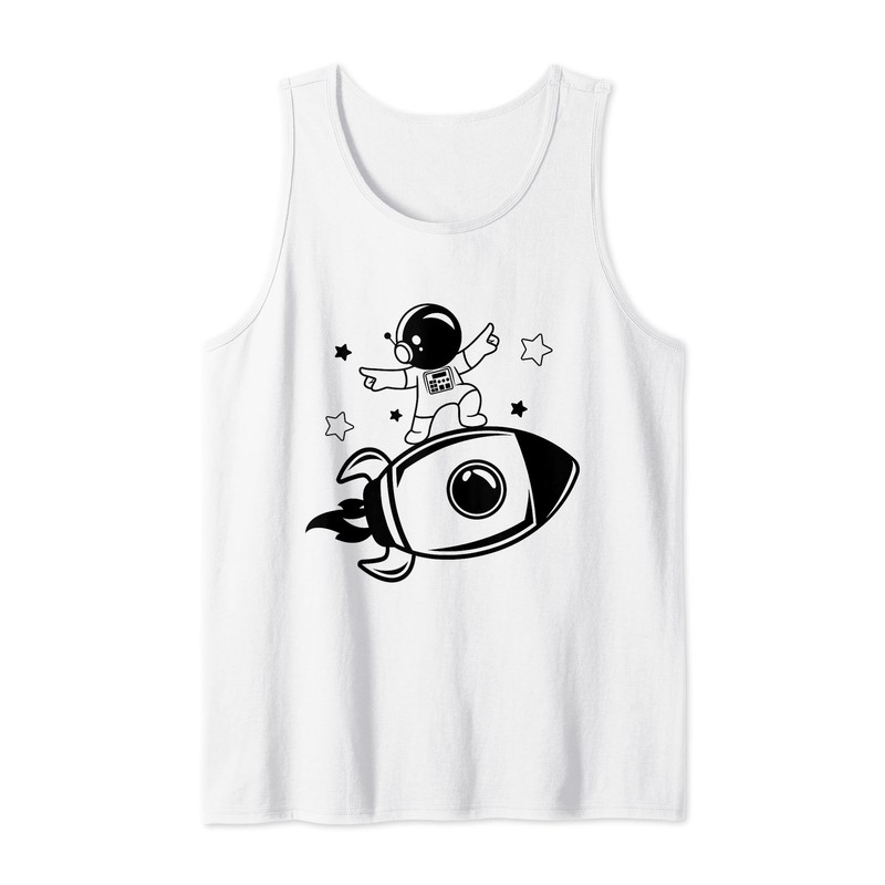 Cute Rocketship Surfing Astronaut in Outer Space for Kids Tank Top