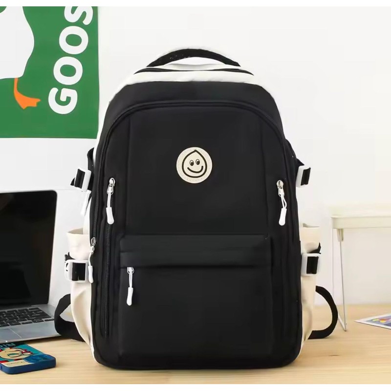 Cute Smiley Face School Backpack, Black and White, Multiple Compartments with...