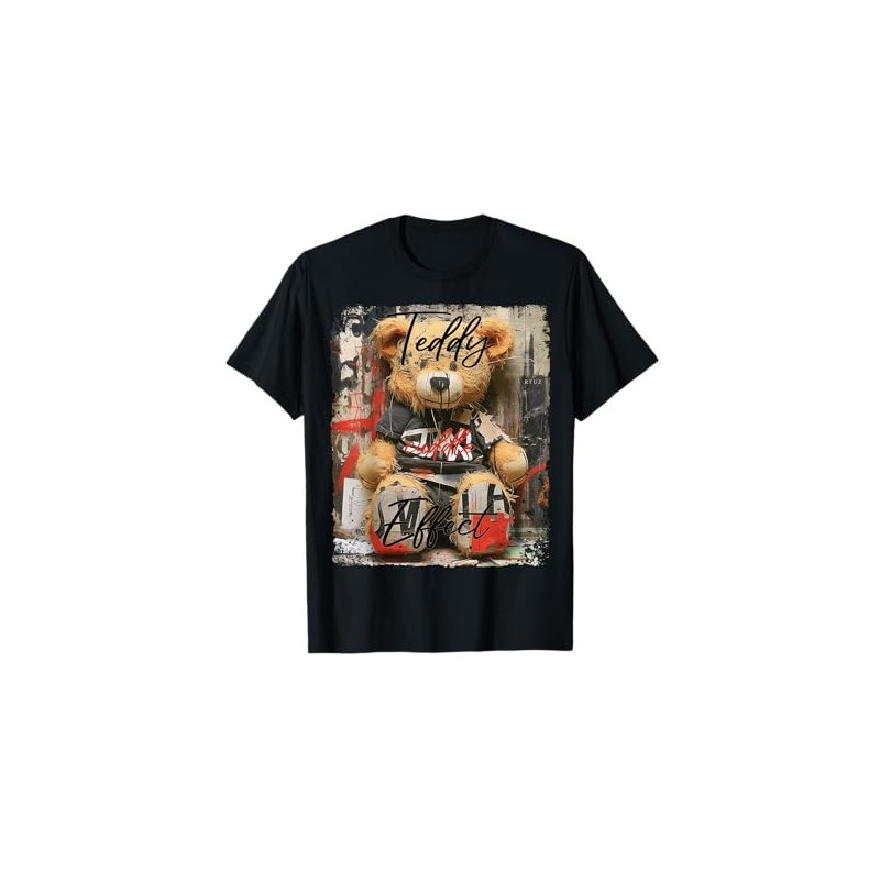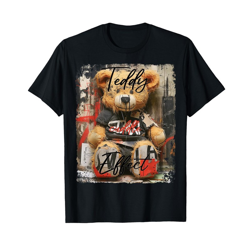 Cute teddy bear graffiti vintage teddy T-Shirt, Small, Black