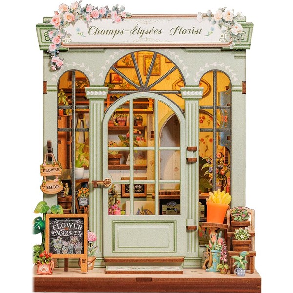 CUTEBEE Book Nook Kit - DIY Miniature Dollhouse with LED Lighting Bookshelf Decoration & Creative Set for Adults (Champs-Élysées Florist)