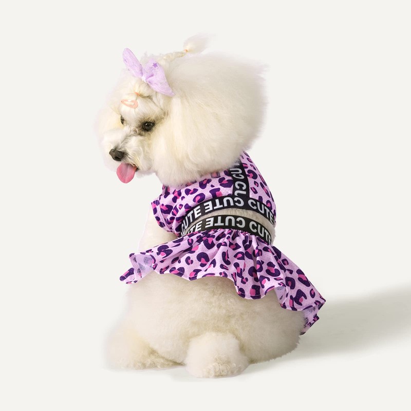 CuteBone Two Piece Dog Sports Dress Athleisure Leopard Print Puppy Pink Skirt Lightweight Small Dogs Girl Clothes Cat Apparel SPS01S
