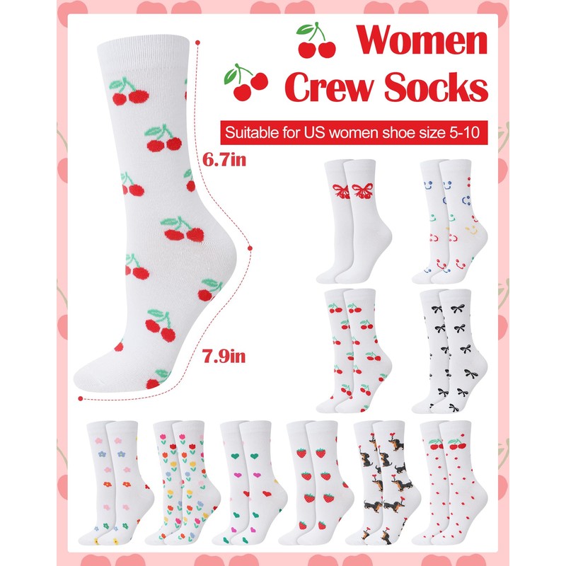 - Proper Size: our cute socks for women are size 9-11, which can fit women's shoes 5-10, suitable for most adult women, easily matched with your clothes, comfy and lightweight, breathable and skin friendly, with different pattern and different colors to satisfy your needs for dressing and keep your feet cozy
