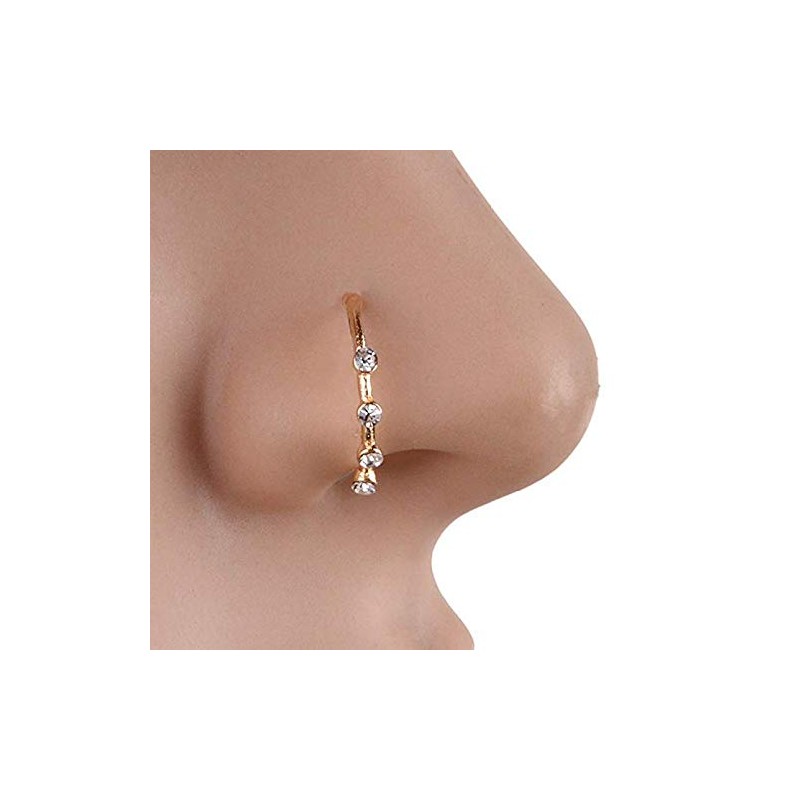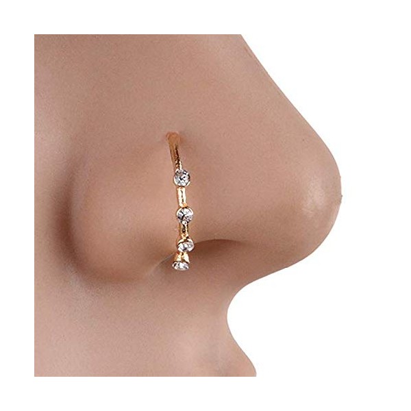 Cutedoumiao Gold Silver Thin Four Diamond Clear Crystals Nose Ring Stud Hoop-Sparkly Crystal Nose Ring (Gold)
