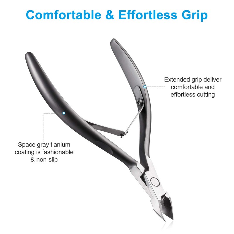 Cuticle Trimmer 3/4 Jaw Extremely Sharp Cuticle Nippers Scissors Stainless Steel Clippers Cutter Remover Pedicure Manicure Nail Tool, opove X7, Space Gray