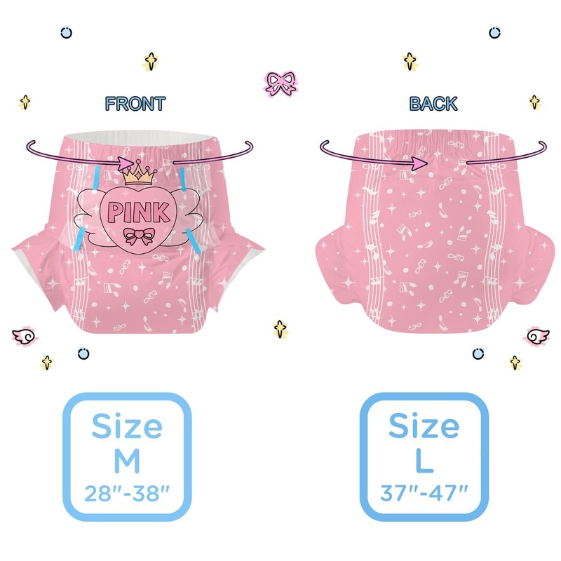 - Small musician design: The CutiePlusU 10-piece disposable adult nappies are made of a strong PE back on the outer layer for safety reasons and are ultra-soft. Four body-hugging PE straps secure the nappy to the front waist. The blue and white PE band and front waist allow multiple adjustment of the straps for a perfect fit!