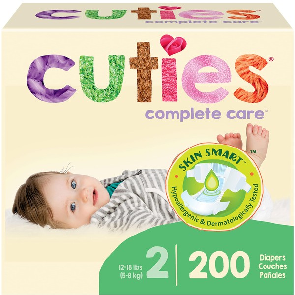 Cuties | Skin Smart, Absorbent & Hypoallergenic Diapers with Flexible & Secure Tabs | Bulk Case | Size 2 | 200 Count