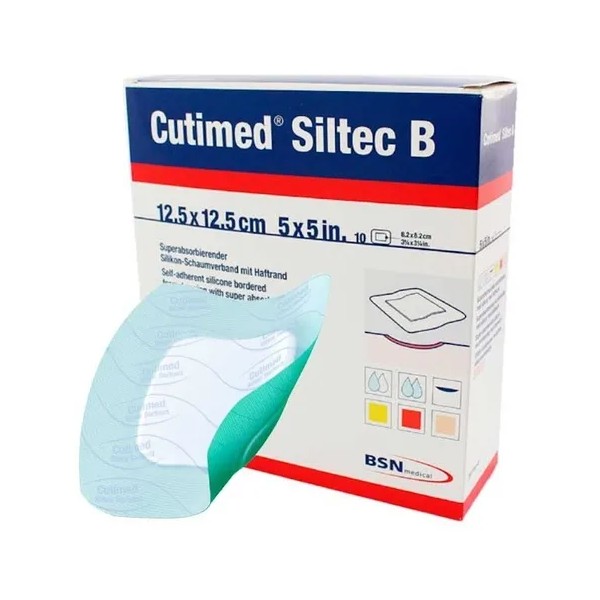 Cutimed Siltec B de 12.5cm x 12.5cm caja con 10 piezas.