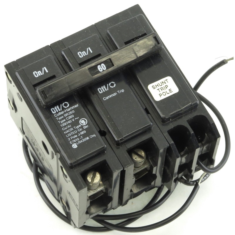 Cutler Hammer BR260ST Circuit Breaker, 2-pole 60-amp with shunt trip