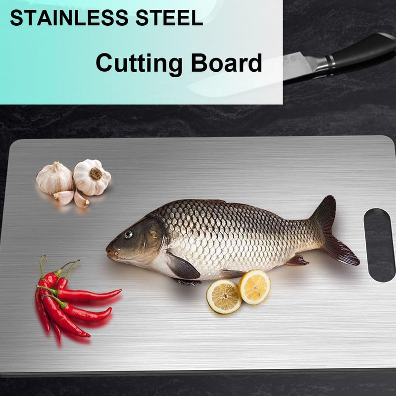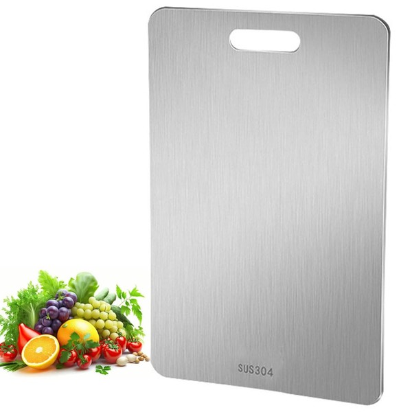 - Versatile: Double-sided 23x34cm (9x13.4 inches) cutting board made of durable 304 stainless steel for slicing, dicing, and chopping various ingredients.