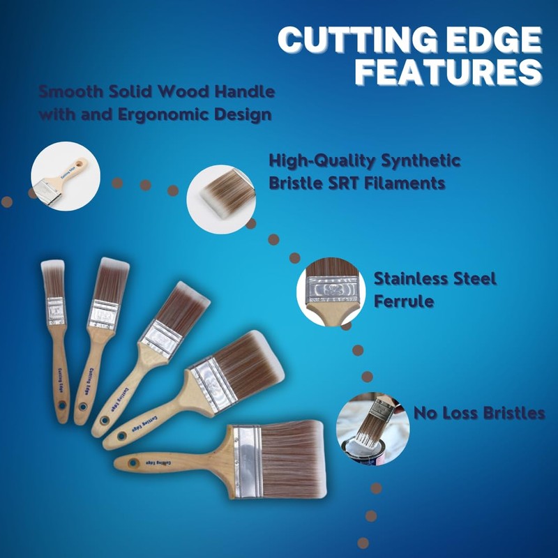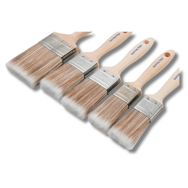 The original Cutting Edge Premium professional Synthetic paintbrushes. The ergonomic beavertail handle allows steady handling, you won't need masking tape when you use Cutting Edge! Manufactured using the highest quality SRT (Solid Round Tapered) synthetic fibres. These paint brushes don't need 'breaking in', as they work perfectly straight out of the box, unlike traditional brushes. With a stainless-steel ferrule and an ergonomically-shaped handle for a comfortable fit in your hand. Ideal for straight line tracing and smooth paint finishes. Tried, tested and trusted by professional decorators around the UK, the Cutting Edge paint brush range gives you a great finish every time. Suitable for use with all paint and varnishes.