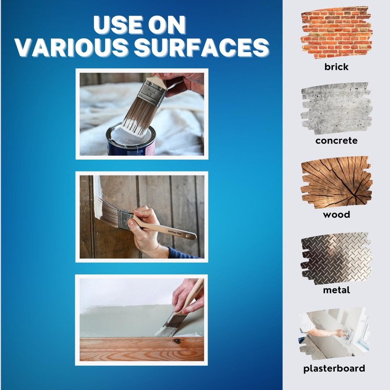 - SYNTHETIC PAINTBRUSH - works great for water-based paint because it doesn't draw moisture out of the water-based paint so it’s easier to apply than with a natural bristle brush and won’t leave tramlines and ruin your finish. Can also be used with other varieties of paint types including emulsions (eg. matt, silk, eggshell), gloss and satin, as well as wood stains and varnishes.
