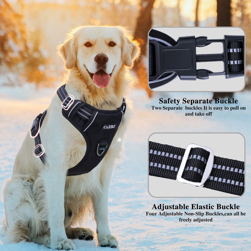 - NO PULL, NO CHOKE - Our no pull dog harness is specially designed with 2 heavy duty metal leash D-rings with multiple reinforcement stitching. When the dog pulls, you can tie the chest ring to control your dog. When walking a dog, you can use the back ring. The no-pull harness helps you better control, train and easy walk your dog in your daily life.