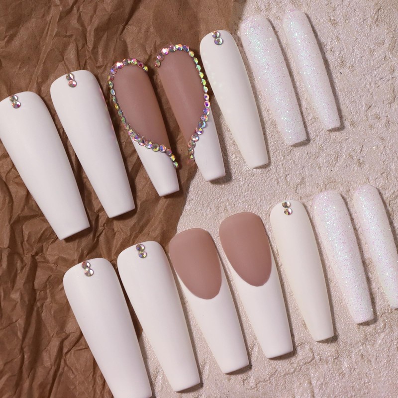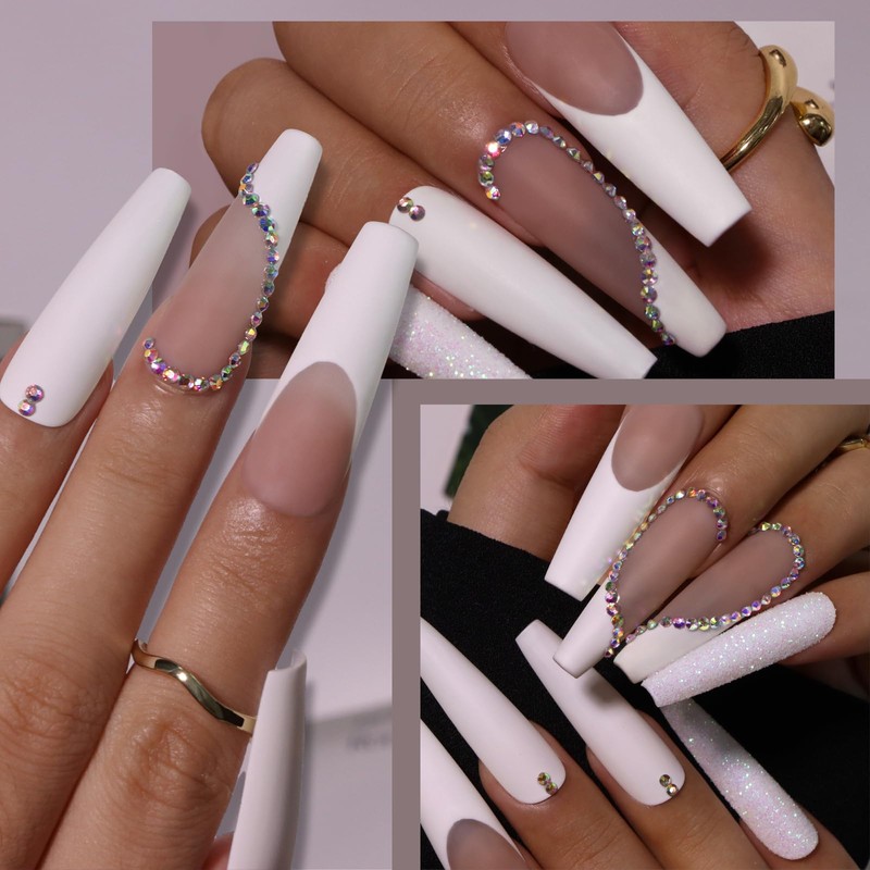 - Beautiful &Elegant Fingertip Art: Matte white French nails and sparkling rhinestones design glows in the light, gravel texture structure on the end finger, noble and elegant, perfect nail art for women and girls. Perfect style and beautiful shape, worth trying!