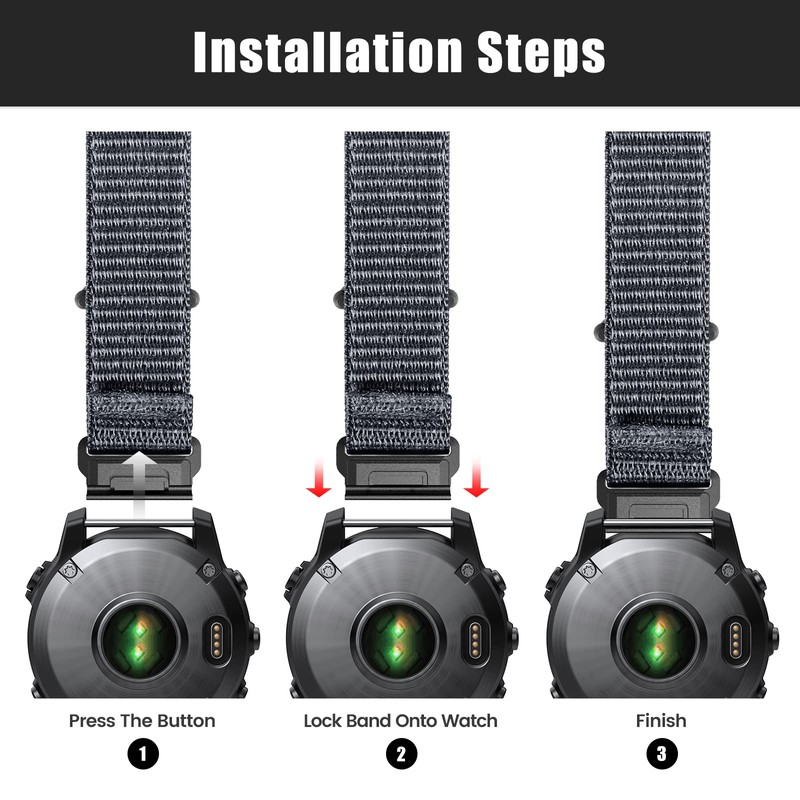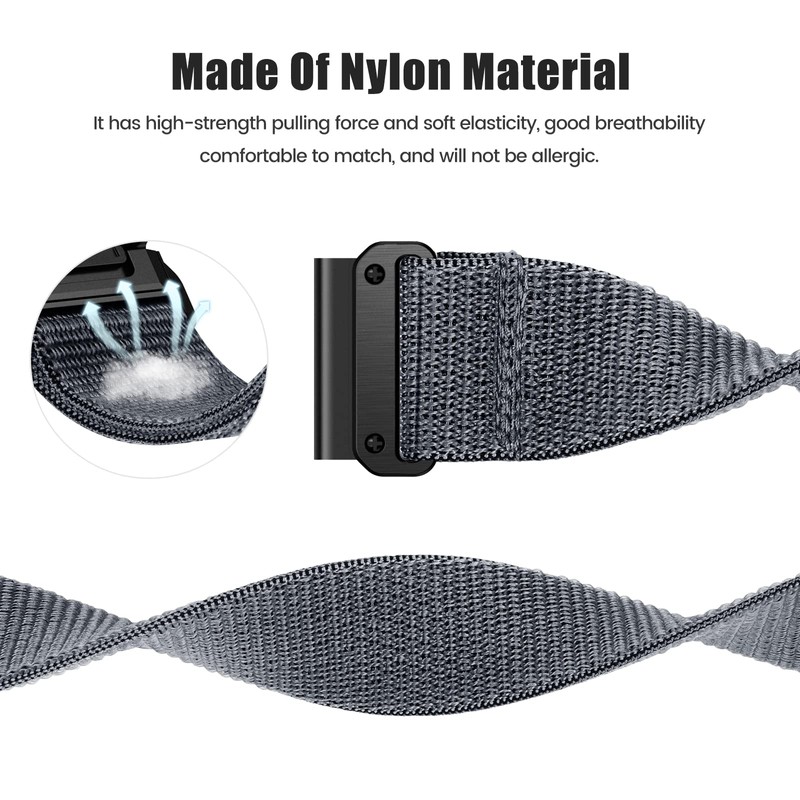 - 【Soft Nylon Material】Fenix 6 watch band is made of high-quality nylon material, with high tensile strength and soft elasticity. When you put it on, the skin-friendly nylon material will closely fit the curve of your wrist. Softened nylon is flexible around the wrist and gentle against skin, with a breathable texture so it’s comfortable to wear all year round.The replacement band is suitable for indoor and outdoor occasions since its breathable and quick-drying material,and not allergic.
