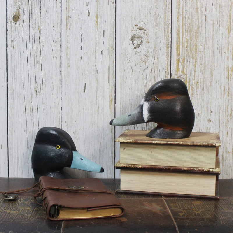 - Made of wood handicraft, amazing hand carved and hand-painted finish. Each duck head is unique and varies in color, grain and weight. Color and grain of item you get maybe slightly different from pictures shown here because wood material is from different batch.