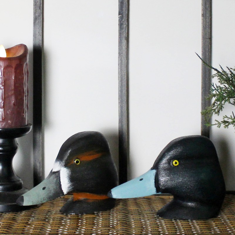 CVHOMEDECO. Primitives Hand Engraving and Painted Wood Duck Head Decor Farmhouse Figurine Decorative Accents, Set of 2
