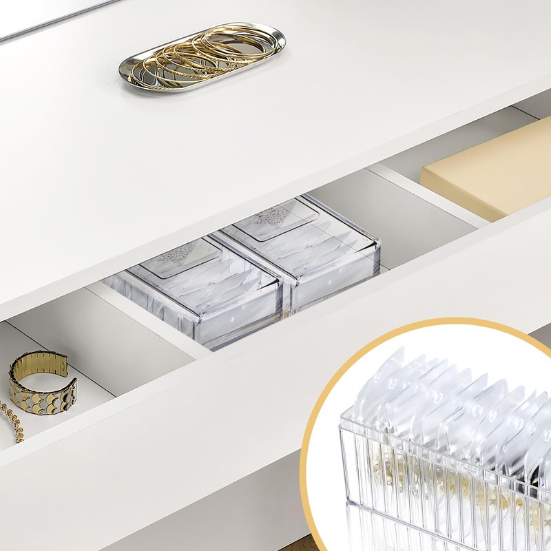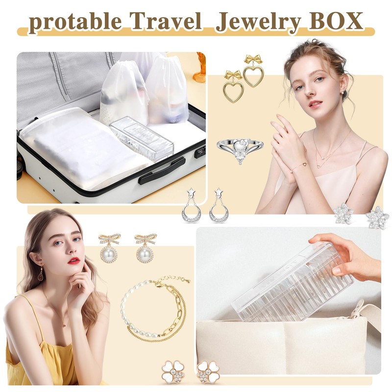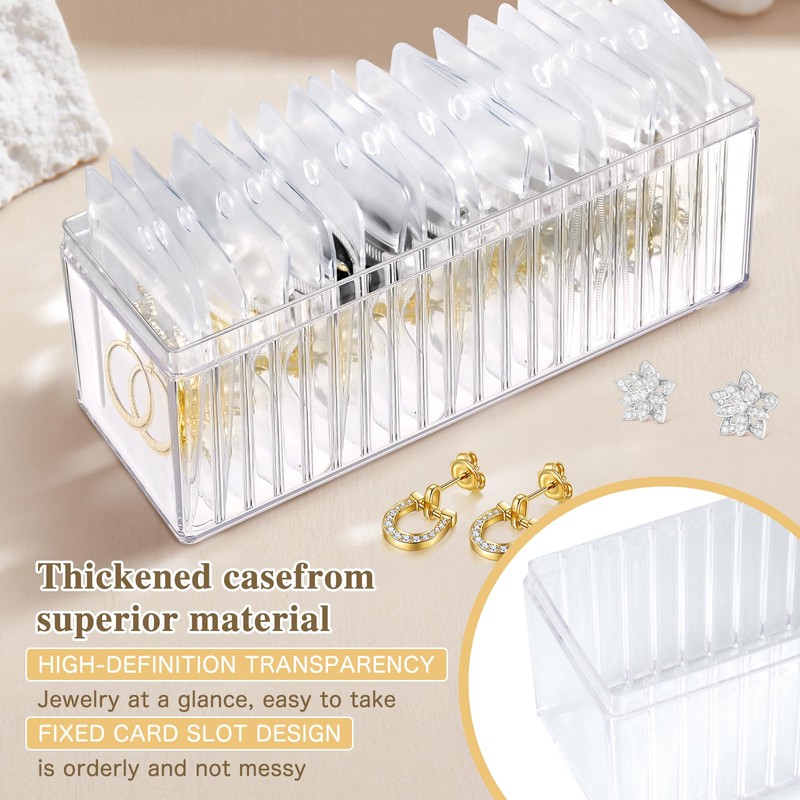 - Acrylic Jewelry Box Organizer : With 20 fixed slots, our jewelry holder organizer ensures your jewelry stays neatly organized and easily accessible. No more tangled necklaces or misplaced earrings;The box comes with a lid to keep out the dust, put the PVC jewelry bags in this Jewelry Organizer Box can double protect your jewelry from oxidizing. And the compact Jewelry Organizer can be placed in a drawer to save desktop space.