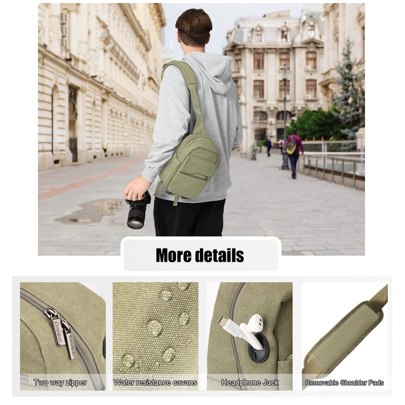 Cwatcun Camera Sling Bag Compact Large Camera Case, Waterproof Canvas Crossbody Camera Bag with Rain Cover, Travel Photography Bag for Canon Nikon Sony Fuji DSLR/SLR/Mirrorless Cameras, Lens, Green