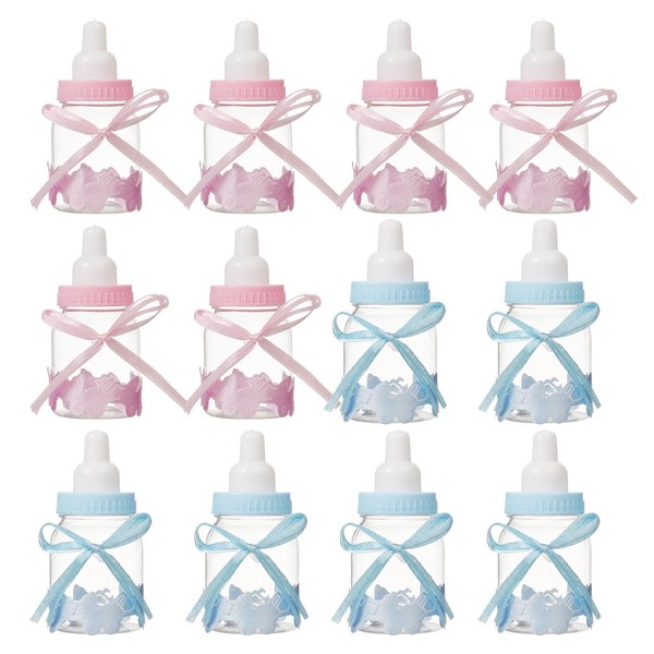 - Product contents: you will receive 12 mini baby bottles measuring 4 x 9 cm in pink and blue, 6 pieces of each colour, suitable for baby full moon parties, newborn parties and other scenes.