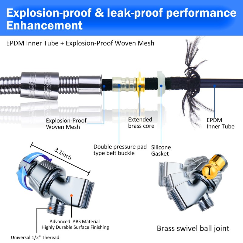 - Easy to install: Package includes a shower head, 59" blast hose, a high quality stand, 4 PP filter pads, PTFE tape and a bath ball. With a universal G1/2" threaded connection, it can be installed with your bare hands, no plumber or additional accessories required. Please do not hesitate to contact us with any questions.